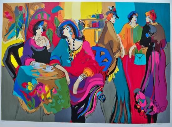 This is a hand signed serigraph by Isaac Maimon titled "CAFE DE LION". Beautiful extra large art piece on extra thick paper. Image measures: 32" x 45". Paper measures 37.5" x 50". Hand signed and numbered by the artist. This piece is numbered from a limited edition of 275. Comes unframed. Comes with a certificate of authenticity. In mint condition!