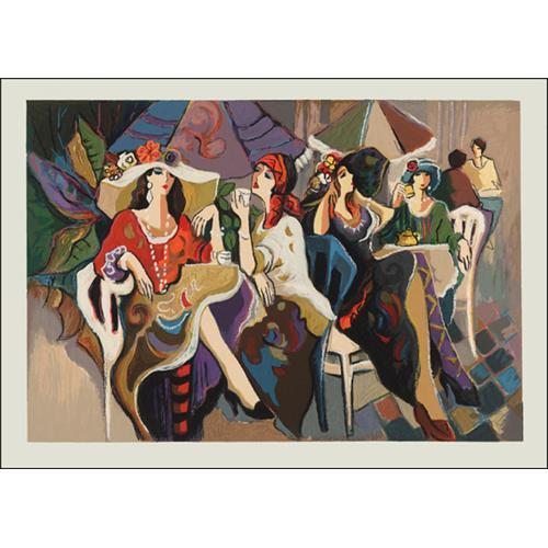 Women meeting in somewhat hazy coffee houses, colors that are bold and bright, the essence of a true urban scene, daytime life and nightlife intermingle. It is a warm, gentle and inviting atmosphere. The air is full of promises and secrets just like any self-respecting bistro. This is Isaac Maimon?s world, the scene that he paints with consuming passion.  Maimon?s paintings capture the 'boulevard culture', that uniquely French atmosphere that so intrigued Lautrec, Bonnard and other artists before him. Though strongly influenced by the Paris school of art, with his intrepid use of color and line he creates works that are absorbing, rich and uniquely Maimon.