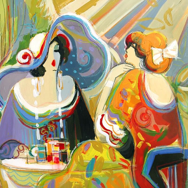 "Golden Fest" is an original acrylic painting on paper by Isaac Maimon, hand signed by the artist. Includes Certificate of Authenticity. Measures approx. 24" x 30" (image).