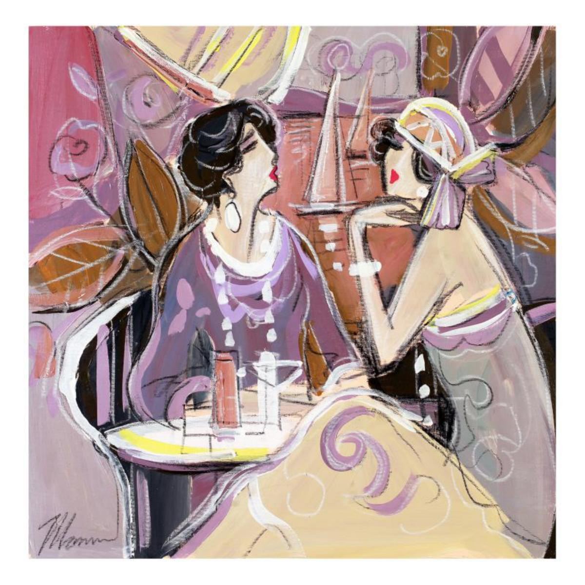 "Lounge Cafe" is an original acrylic painting on paper by Isaac Maimon, hand signed by the artist. Includes Certificate of Authenticity. Measures approx. 22" x 22" (image). Reference #: 230631
