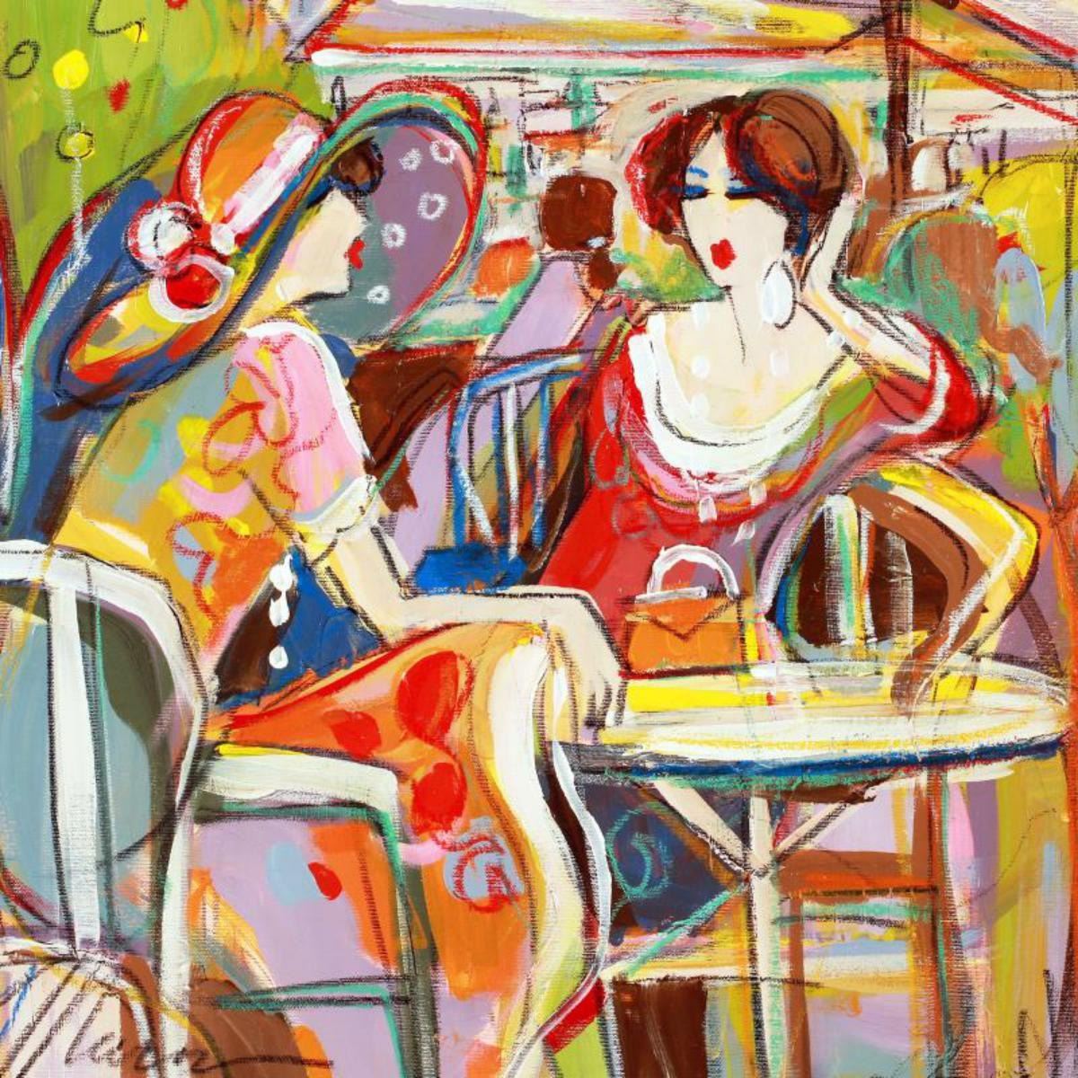"Lunch Picnic" is an original acrylic painting on canvas by Isaac Maimon, hand signed by the artist. Includes Certificate of Authenticity. Measures approx. 22" x 22" (image). Reference #: 222720