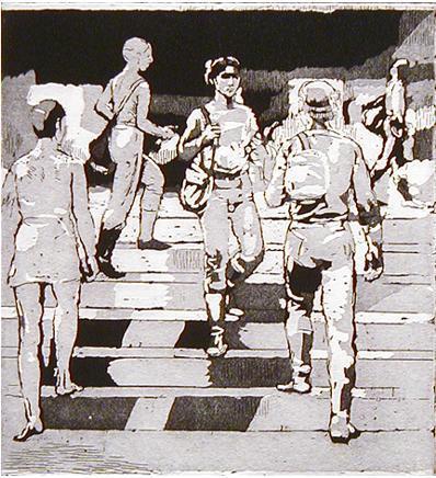 This etching is by well-known American artist and printmaker Isabel Bishop (1902 - 1988): Title: "Students on the Steps" 1981 Published 1984 Etching and aquatint 8 × 7½ Numbered from a limited edition of 75 Excellent condition; never mounted, matted or framed Certificate of Authenticity Isabel Bishop taught at the Art Students League from 1936 to 1937 and was a life member. In 1938, she worked as a Muralist for the W.P.A., and did a mural for the US Post Office in New Lexington, Ohio. She also taught at Yale and the Skowhegan Art School, Maine. She was a member of the National Academy of Design, the National Institute of Arts and Letters, the Society of American Etchers, Gravers, Lithographers, and Woodcutters. Bishop exhibited widely during her life including the Berkshire Museum, the Whitney Museum of American Art, Associated American Artists, and the Midtown Galleries, NYC. She was featured at several Venice Biennials and won awards for her work at the American Artists Group (etching), the National Academy of Design, the Corcoran Gallery of Art, Washington, DC; the American Society of Graphic Artists; the National Arts Club; the Royal Society of Arts (London), and others. Her works are in the permanent collections of at least 39 museums including the Boston Museum of Fine Arts, the Metropolitan Museum of Art, The Whitney Museum, the Brooklyn Museum, the Philadelphia Museum, the Corcoran Gallery, the Phillips Collection, the Smithsonian, and the National Academy of Design. * * Please click on the link below to view our other prints by Isabel Bishop.
