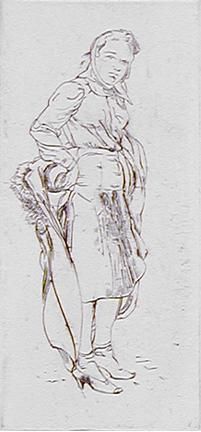 This engraving is by well-known American artist and printmaker Isabel Bishop (1902 - 1988):Title: "Young Woman with Kerchief" 1943 Published 1981 Engraving 3 × 8½ Numbered from the Roman numeral edition of 25 Excellent condition; never mounted, matted or framed Certificate of Authenticity Isabel Bishop taught at the Art Students League from 1936 to 1937 and was a life member. In 1938, she worked as a Muralist for the W.P.A., and did a mural for the US Post Office in New Lexington, Ohio. She also taught at Yale and the Skowhegan Art School, Maine. She was a member of the National Academy of Design, the National Institute of Arts and Letters, the Society of American Etchers, Gravers, Lithographers, and Woodcutters. Bishop exhibited widely during her life including the Berkshire Museum, the Whitney Museum of American Art, Associated American Artists, and the Midtown Galleries, NYC. She was featured at several Venice Biennials and won awards for her work at the American Artists Group (etching), the National Academy of Design, the Corcoran Gallery of Art, Washington, DC; the American Society of Graphic Artists; the National Arts Club; the Royal Society of Arts (London), and others. Her works are in the permanent collections of at least 39 museums including the Boston Museum of Fine Arts, the Metropolitan Museum of Art, The Whitney Museum, the Brooklyn Museum, the Philadelphia Museum, the Corcoran Gallery, the Phillips Collection, the Smithsonian, and the National Academy of Design. * * Please click on the link below to view our other prints by Isabel Bishop.