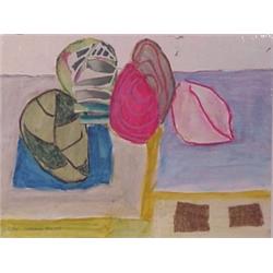 Isabel Field (20th Century) American, STILL LIFE, color pastel with collage on paper, 9 x 12",...