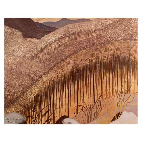 [Canadian CGP, OSA 1903-2002] UNTITLED (AUTUMN HILLS); 1961 Oil on board 16 x 20 in. Signed & dated; Estate stamped verso.