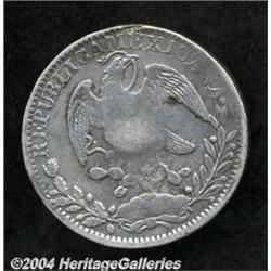 <B>Isabel II Counterstamp (1834), </B></I>KM129, "Y II" counterstamp on Mexico 8 Reales 1835-Zs-OM. Both the host and counterstamp are VF, and the c/s is bold on the crown and weak on the Y II. <BR><BR><B>Important notice:</B> Heritage usually auctions material at the rate of 200-250 lots per hour. On some occasions eBay Live bid software or the Internet may not be able to keep up with the pace of the auction. We recommend placing a realistic absentee bid now as insurance to avoid disappointment. Occasionally the auctioneer may eliminate or reject an eBay Live bid, and the auctioneer may also reopen a lot after the close of the eBay live bidding (usually because we missed an audience bid), and may reject your bid even if it shows you as the winning bidder. By bidding via eBay Live, you agree that Heritage may award the lot to another bidder at its sole discretion under the circumstances described above or any other reasonable circumstances. Since eBay bids are not shown to us until we open the lot on the floor, we treat those bids just like floor bids. In most cases the floor responds before the eBay bid is presented to us, due to Internet lag time, so for consistency we have made it a policy that floor bids are always considered first over tie eBay live bids. Also please note that all Heritage lots purchased through eBay Live carry a 20% Buyer's Premium. Please make sure you read the Terms and Conditions before you bid.