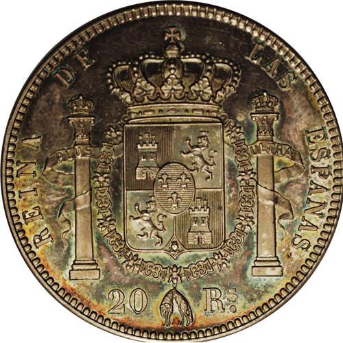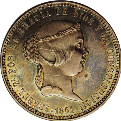 Isabella II uniface die-trials 20 Reales 1851, types as