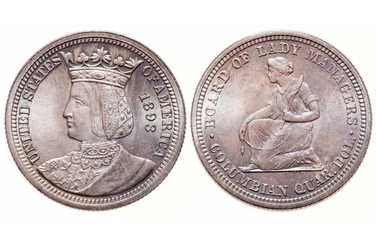 Isabella Twenty-Five Cents. Mint State-64 or better. Beautiful light rainbow toning.