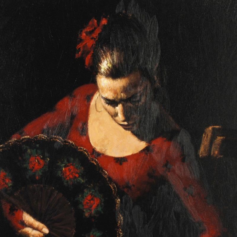 "Isabella" is a hand textured limited edition giclee on stretched canvas by Fabian Perez. The piece is numbered and hand signed. Includes a certificate of authenticity. Measures approximately 25" x 20".