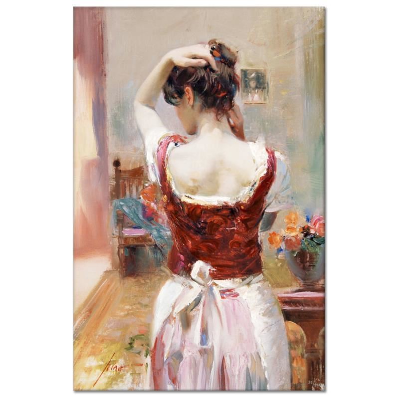 "Isabella" is a limited edition giclee on stretched canvas that has been hand-embellished by Pino himself, AP Numbered and Hand signed by Pino (1939-2010). Includes Certificate of Authenticity. Measures approx. 18" x 28" (image).