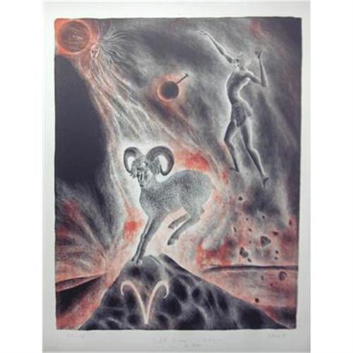Part of a collection of lithographs for each sign of the zodiac by French Artist/Author/Illustrator Isabelle Drouin.