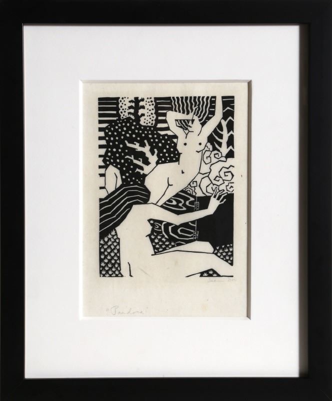 Isami Doi, Pandora, Woodcut on thin wove paper