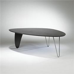 Isamu Noguchi Rudder coffee table, model IN-52 Herman Miller USA, 1949 ebonized plywood, aluminum 50"w x 36"d x 15"h Literature: Isamu Noguchi, Sculptural Design, Vitra Design Museum 2002, page 279