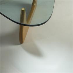 Isamu Noguchi coffee table, model IN-50 Herman Miller USA, c. 1945 birch, glass 50.5"w x 36"d x 15"h This example of the famous sculptural coffee table comes from the first years of production with a solid birch structure and green glass.
