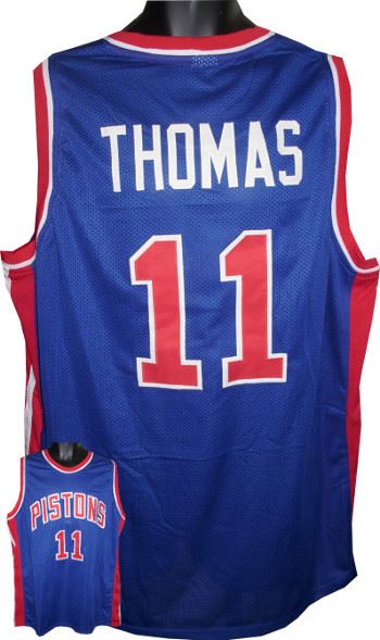 Isiah Thomas played point guard for the Detroit Pistons of the National Basketball Association (NBA) from 1981 until 1994. He led the "Bad Boys" to the NBA Championship in the 1988-89 and 1989-90 seasons. During the NBA's 50th anniversary, he was named one of the 50 Greatest Players in NBA History. The Pistons won the 1989 series in a four-game sweep, marking the first time a team (Lakers) had swept the first three rounds of the playoffs, only to be swept in the finals. As of today, the Pistons are the most recent Eastern Conference team to sweep an NBA finals. This is an Isiah Thomas Detroit Pistons unsigned Blue TB unlicensed custom-prostyle jersey with twill stitched nameplate and numbers. perfect for autograph or to wear! Size XL
