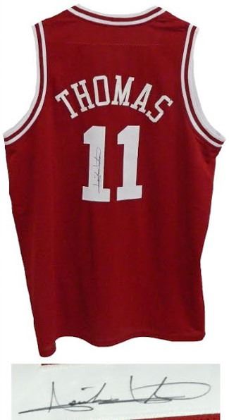 Isiah Thomas played point guard for the Detroit Pistons in the NBA from 1981 until 1994. He led the "Bad Boys" to the NBA Championship in the 1988-89 and 1989-90 seasons. During the NBA's 50th anniversary, he was named one of the 50 Greatest Players in NBA History. Isiah Thomas has hand autographed Indiana Hoosiers Red Custom Jersey. Schwartz Sports Hologram and Certificate of Authenticity.