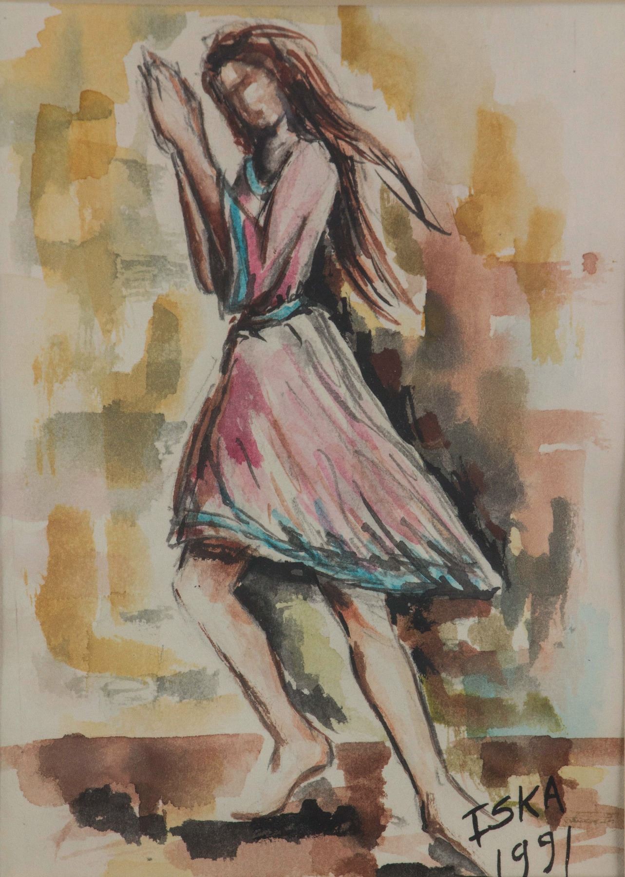 Painting of a praying woman; watercolour on paper; framed; signed Iska, Canadian artist; dated 1991; 7 inches x 5 inches
