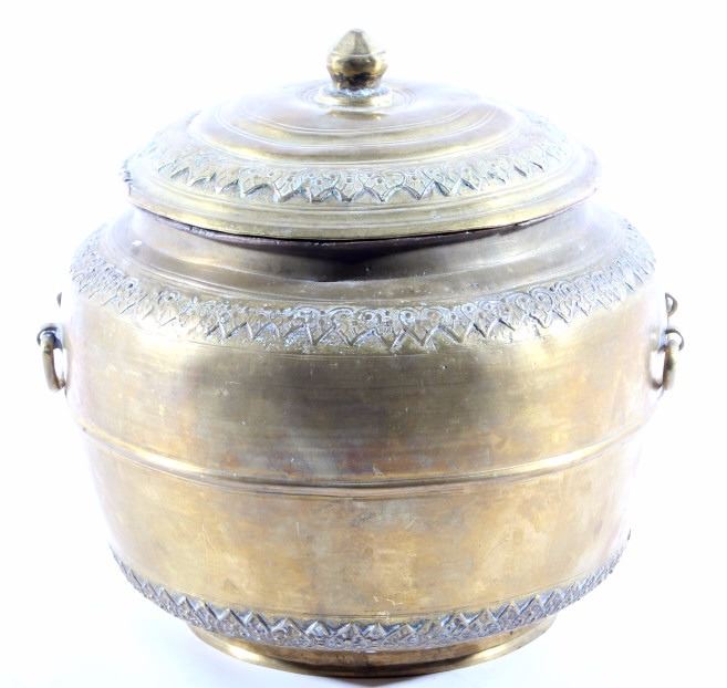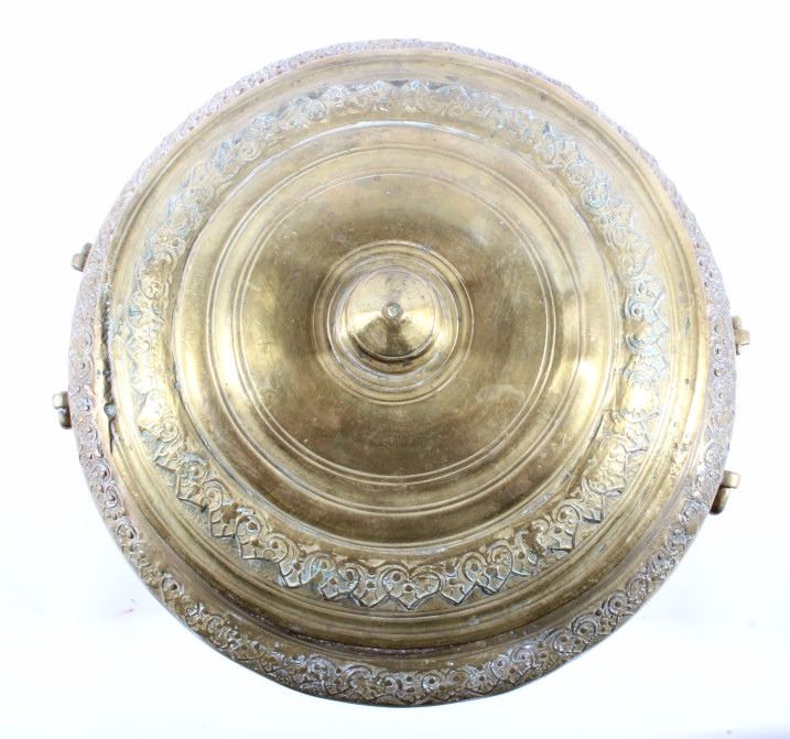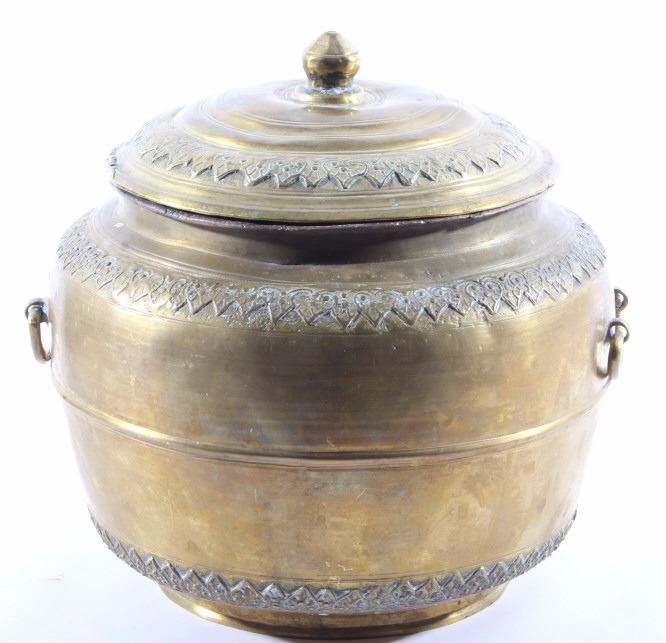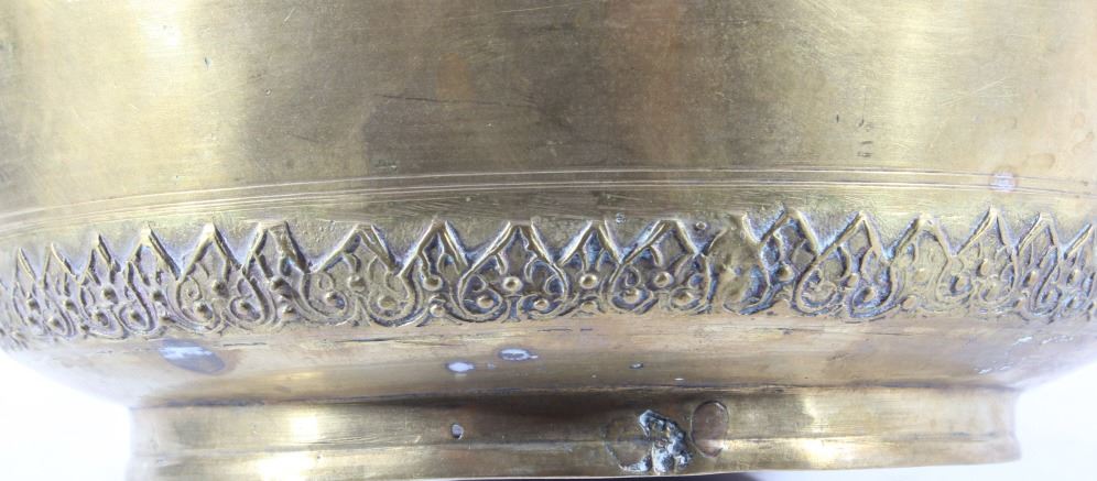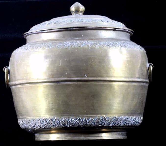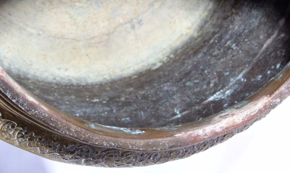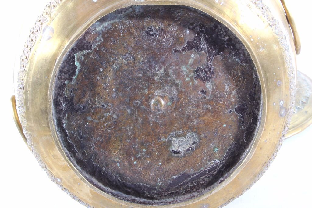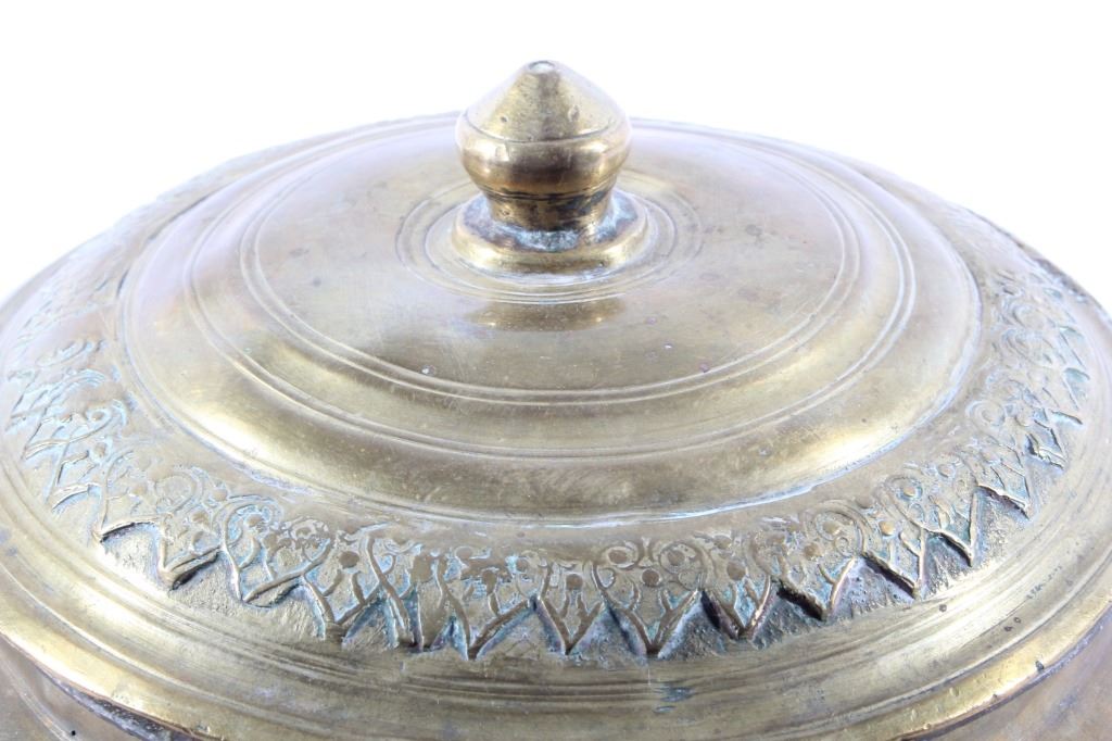 This is a very early Islamic Persian Bronze covered pot showing excellent detail and quality. The piece is from the 14th to 15th Century. Unfortunaley a previous owner cleaned the excellent patina on the outside of the piece, but this is still one of the finest covered Islamic pots available. The inside and base show the true patina. The piece measures 8"H x 8" in diameter.
