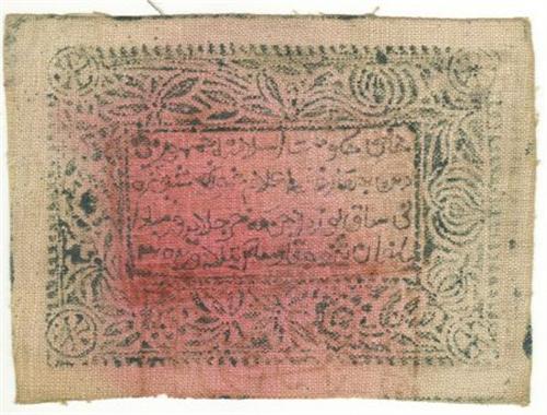 China, Islamic Republic of Turkmestan, 100 silver Dachin 1933 (AH1352) on linen cloth, Pick number S 3039. Scarce notes.