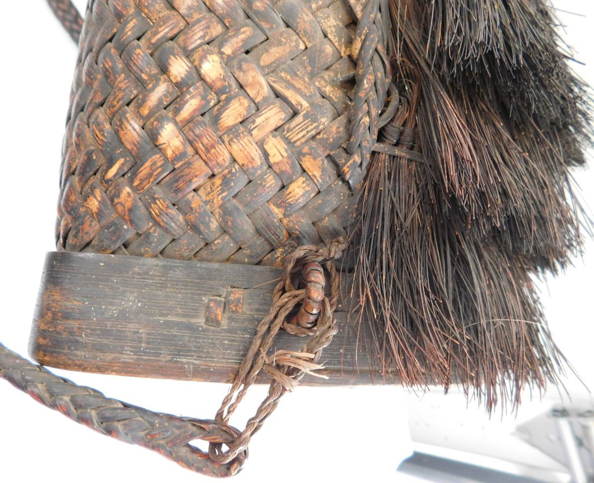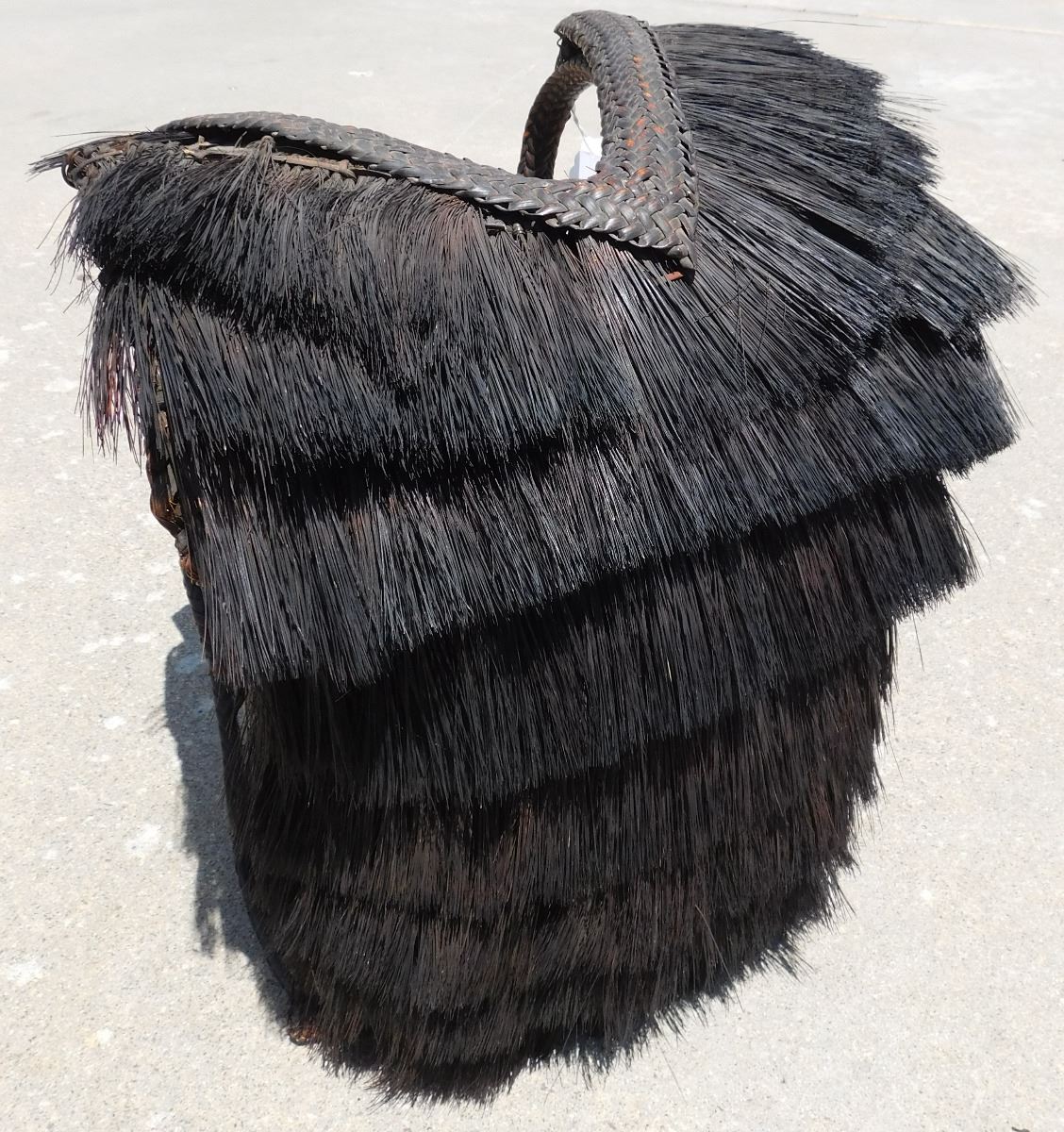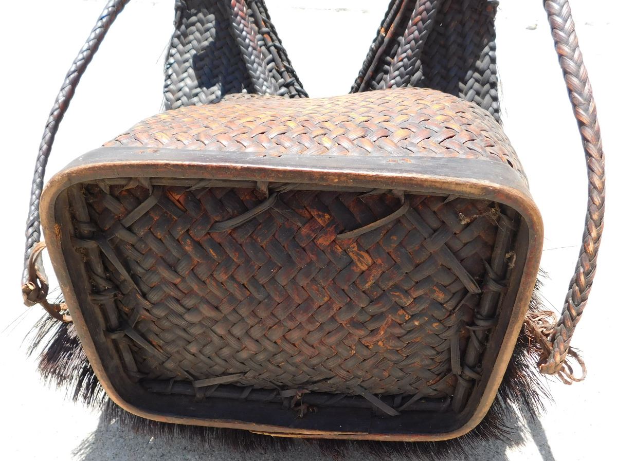 This is a very unusual possibly Indonesian Island back pack and basket. It is dated from the 1930's and measures 16 x15x16 inches. It is in good condition with some patina. There is a small basket within the back pack. Item is made from basketry and fiber. Shipping: $60 This item came from estate of long time collector in the San Diego area.