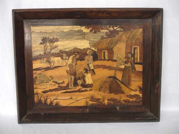Islands Marquetry Picture in Wood Frame. Visual measures 14''x20''. SHI $35.