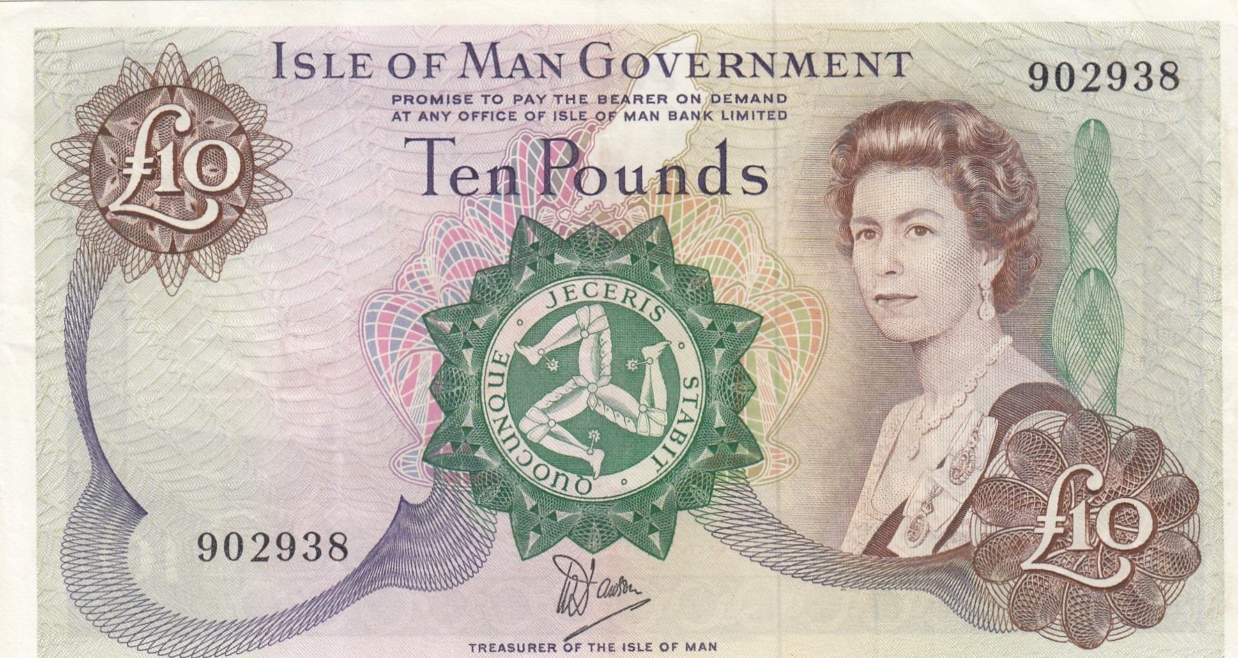 Isle of Man, 10 Pounds, 1972, XF, p36abr/Queen Elizabeth II Portrait, Serial No: 902938