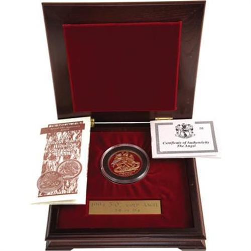 <B>Elizabeth II 5 Oz gold Angel 1994,</B></I> unlisted in Krause, Gem Proof in the original wooden case with certificate.<BR><BR><b>Shipping:</b> Coins & Currency (<a target="_blank" href="http://www.heritageauctions.com/common/shipping.php">view shipping information</a>)
