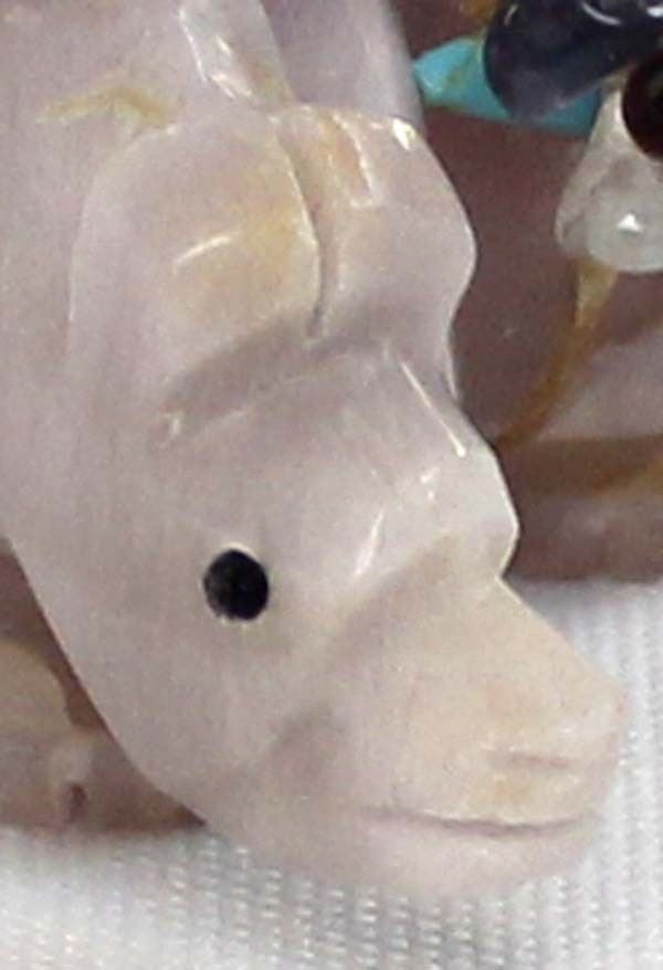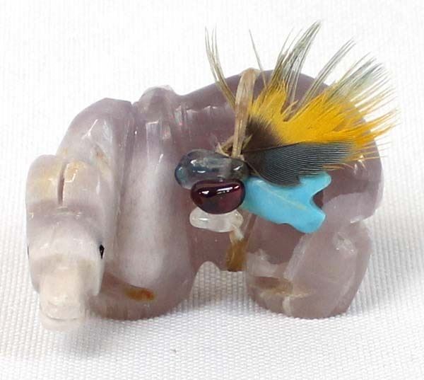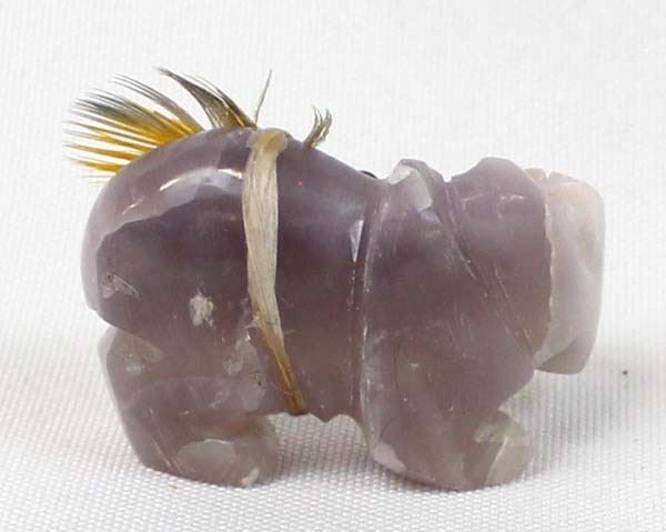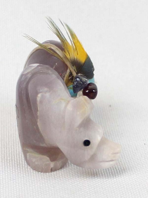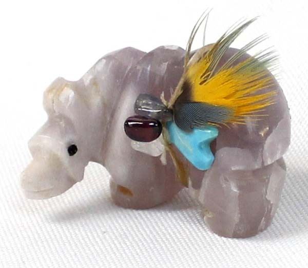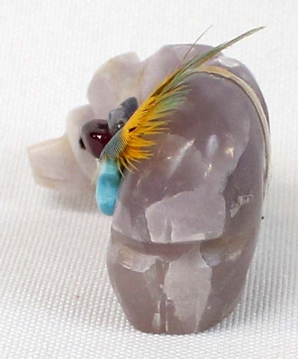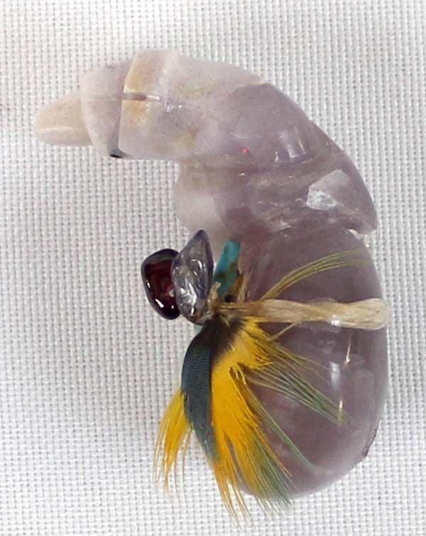 Native American Isleta Fluorite Bear Fetish by Andy Abeyta, measures 1.5'' x 1'' x .5'', turquoise arrowhead spirit bundle embellished with feathers, amethyst, and quartz