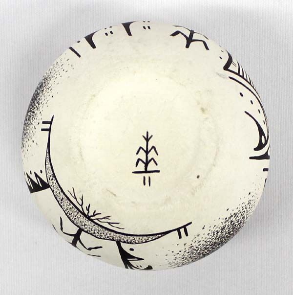 Native American Polychrome Pottery Bowl, cornstalk hallmark on the bottom, measures 3'' x 3"