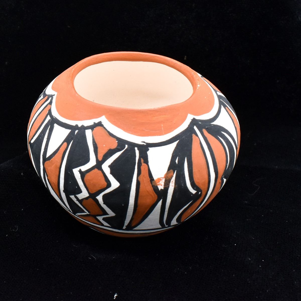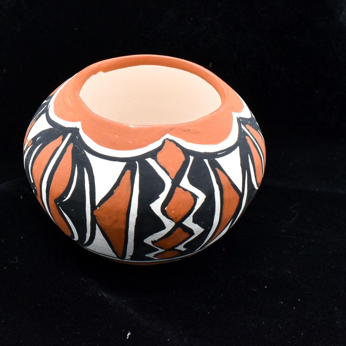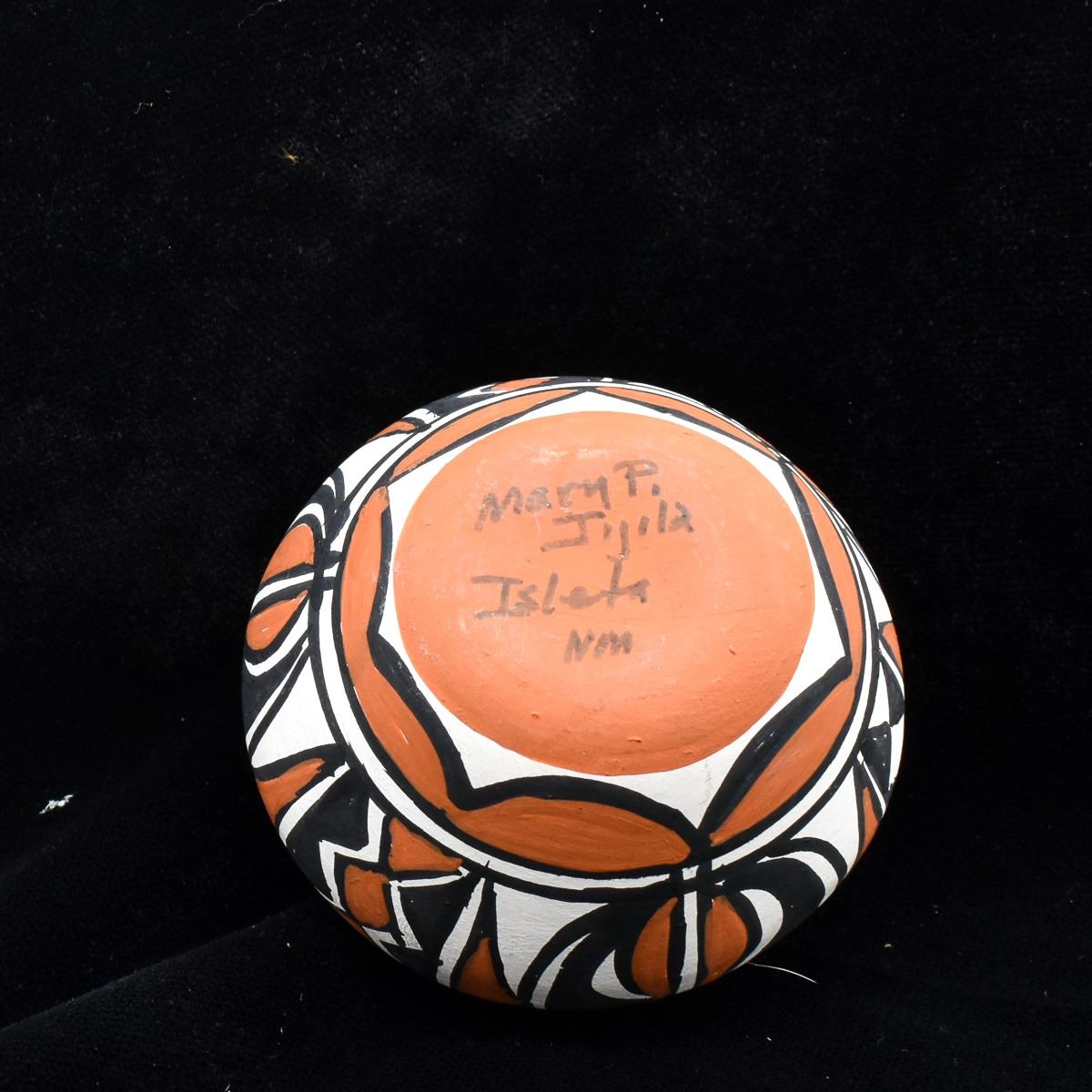 Native American Isleta Pottery Jar by Mary P. Jojola, measures 2.75''D x 2''H and is signed on the bottom