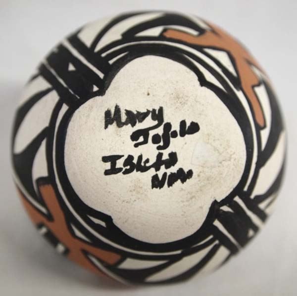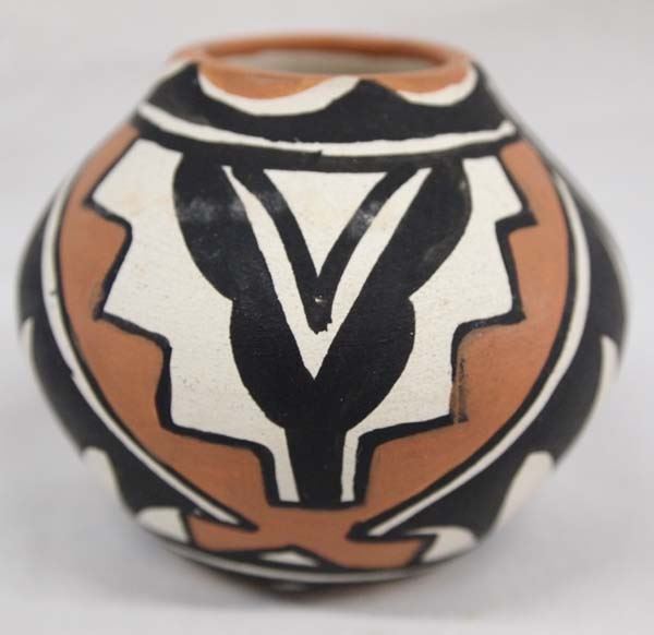 Native American Isleta Pueblo Polychrome Miniature Jar by Mary Tafoya, signed on bottom by artist, measures 2.5'' x 3''
