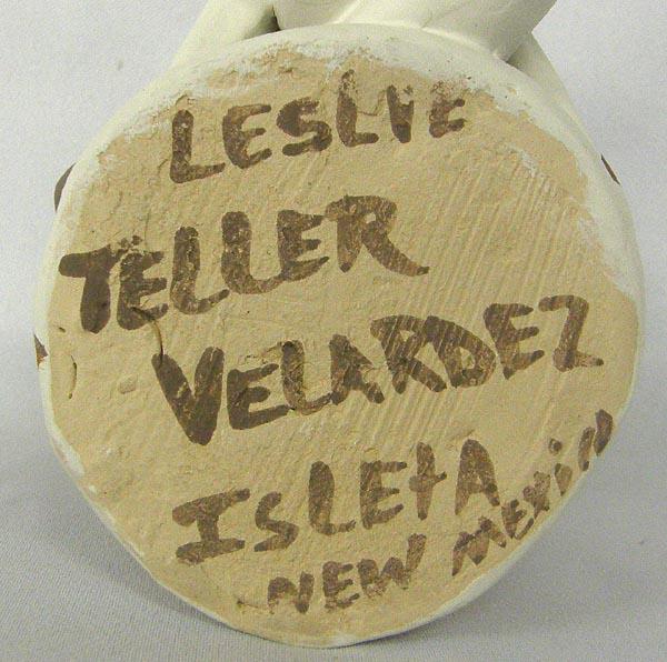 Isleta Pueblo Pottery Storyteller By Leslie Teller Velardez. Measures approx. 4.5'' x 3''. SHI $25.