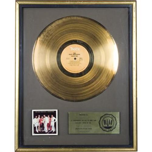 <B>Isley Brothers "Showdown" RIAA Gold Album Award.</B></I> An RIAA award presented to none other than Rudolph Isley to commemorate the sale of more than 500,000 copies of the group's 1978 Funk LP. Framed to an overall size of 17" x 21" and in Very Fine condition with some wear to the frame.<BR><BR><b>Shipping:</b> Framed - with Glass, Medium (<a target="_blank" href="http://www.heritageauctions.com/common/shipping.php">view shipping information</a>)