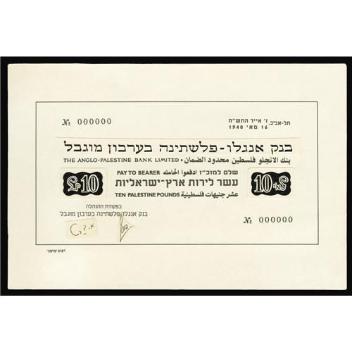 Israel $10 Anglo-Palestine Bank Limited 1948 Pick 4p U
