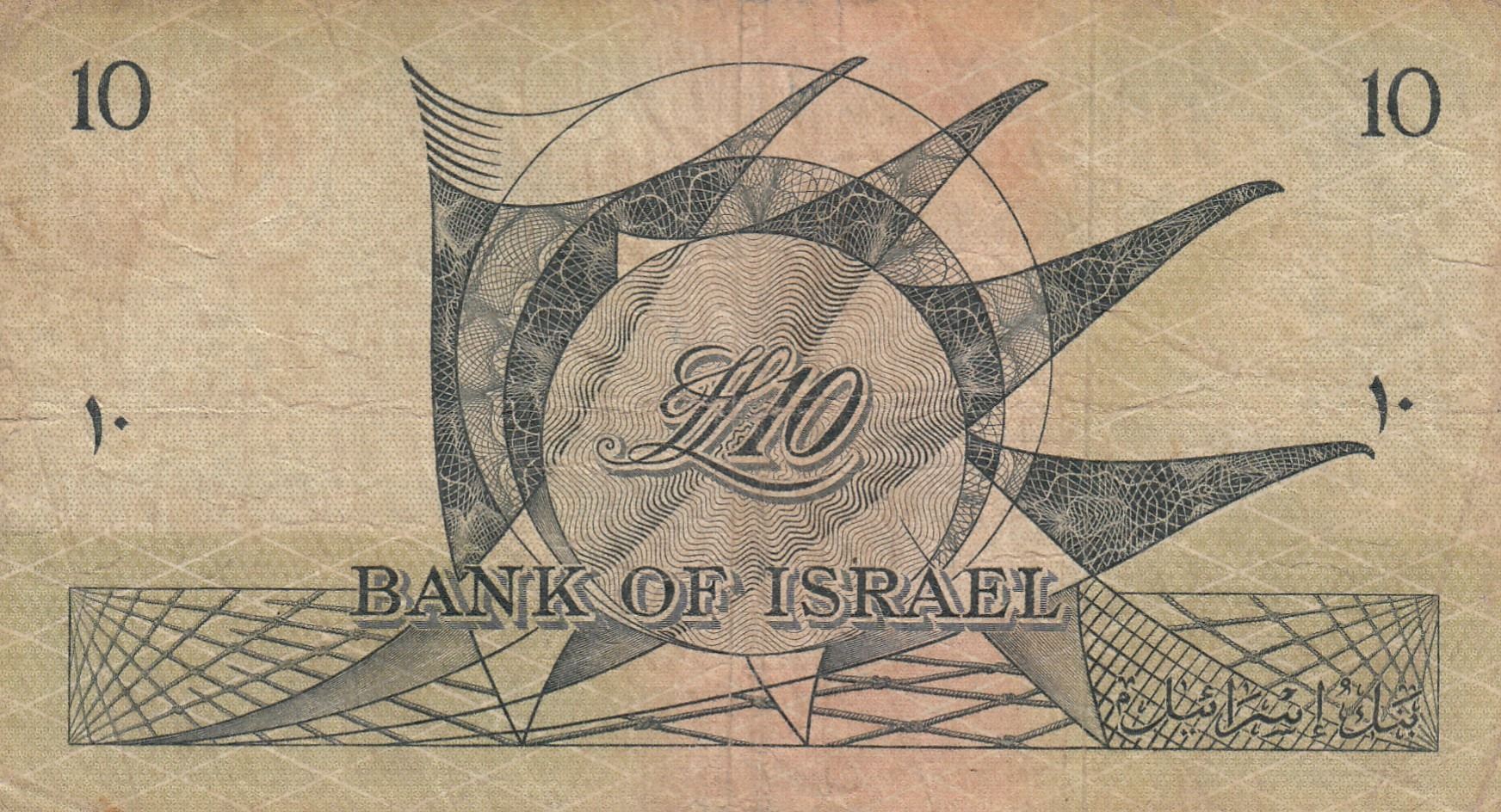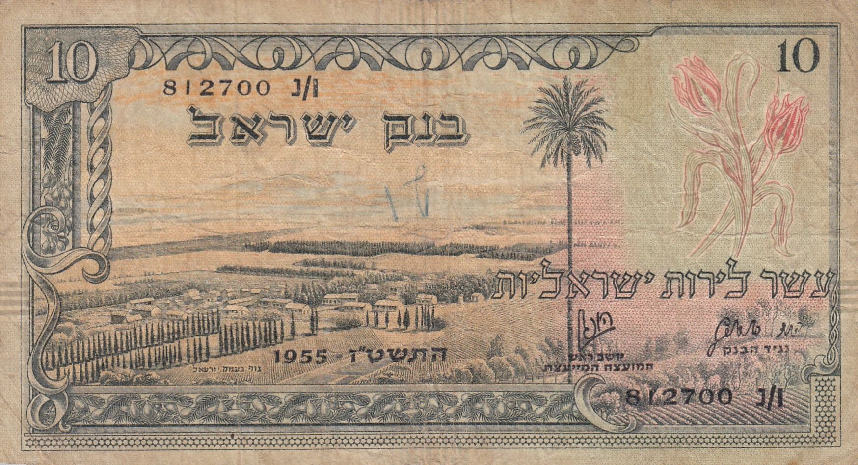 Israel, 10 Lirot, 1955, FINE (-), p27br/serial number: 812700