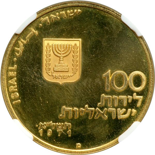 Israel. 100 Lirot, 1971. Fr-8; KM-60. Weight 0.6366 ounce. Let My People Go. NGC graded Proof 64 Cameo.