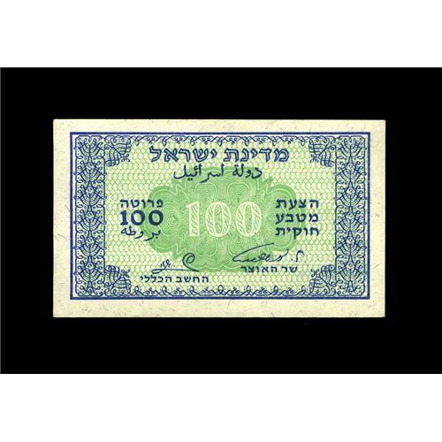 <B>Israel</B></I> 100 Pruta (1952) Pick 12b<BR>A nice example of this signature combination. <B>Crisp Uncirculated.</B></I>