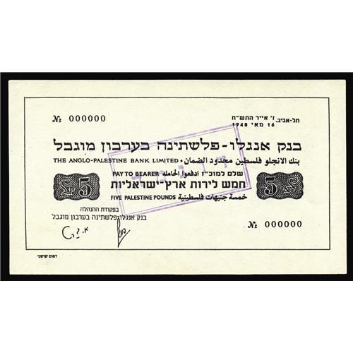 Israel $5 Anglo-Palestine Bank Limited 1948 Pick 3p UN