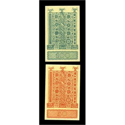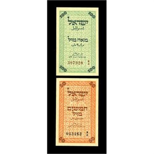 <B>Israel</B></I> 50 Mils (1952) Pick 6 Choice CU</B></I><BR><B>Israel</B></I> 100 Mils (1952) Pick 7 Choice CU.</B></I><BR>Here are two choice notes form the early days of the Jewish state. These are listed at $300 a piece in the Krause reference.