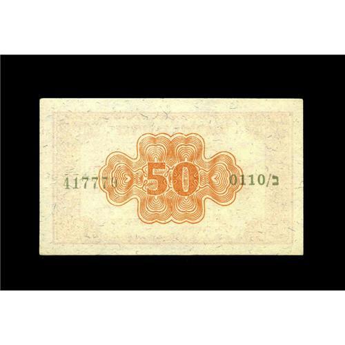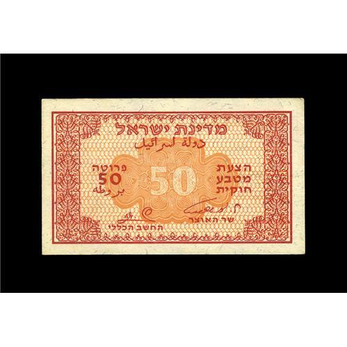 <B>Israel</B></I> 50 Pruta (1952) Pick 10b; 10c<BR>This <B>Crisp Uncirculated</B></I> pair contains the second and third signature combinations for this design.