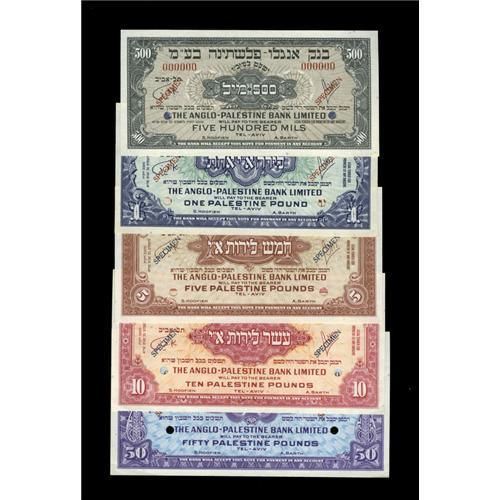 Israel 500 Mils; $1; $5; $10; $50 Anglo-Palesti