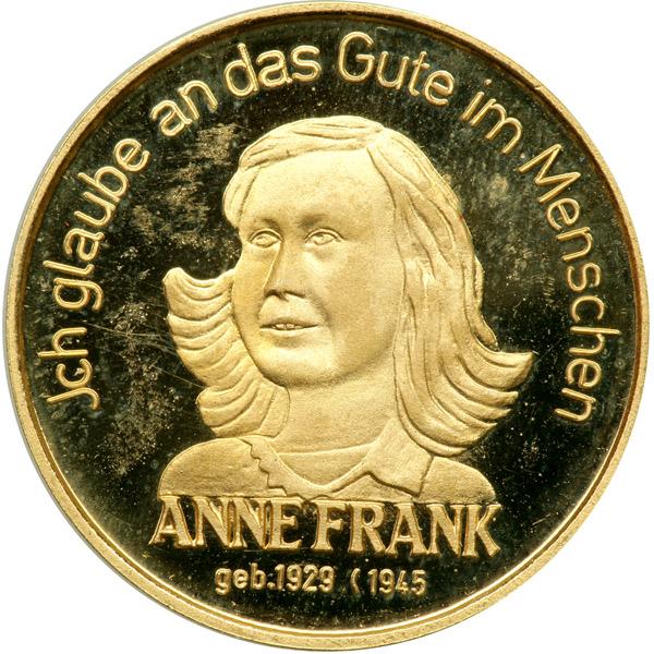 Israel. Gold Medal, ND. 26 mm. 8 grams.900 fine. To commemorate Anne Frank, 1929-1945. Brilliant Uncirculated.