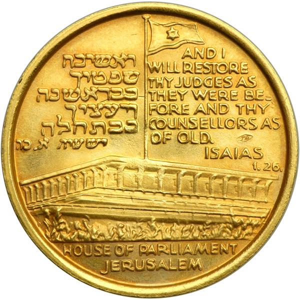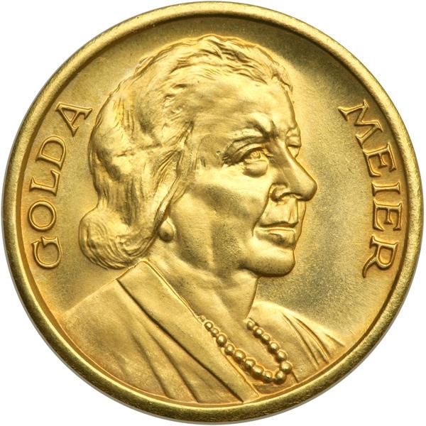 Israel. Gold Medal, ND. 8 Grams.750 Fine Stamped. Golda Meier, bust right. Reverse: House of Parliament Jerusalem, legend above. Uncirculated.