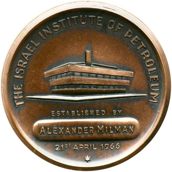 Israel. Medal, 1966. PM-36. Bronze. 59 mm. Mintage 60 pieces. Israel Institue of Petroleum Building Presentation Medal. With Proclamation. Uncirculated.