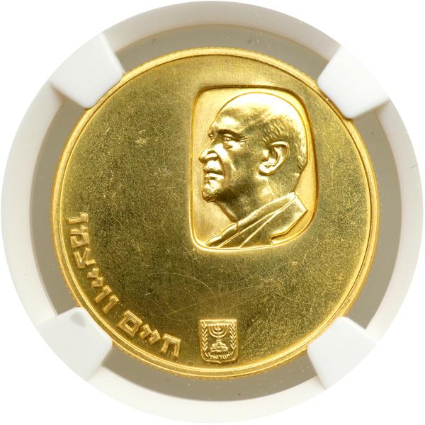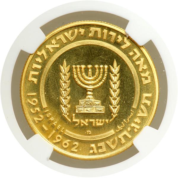 Israel. Set of 50 and 100 Lirot, 1962. Fr-2,3; KM-40,41. Total weight 1.1799 ounces. On the 10th Anniversary of Independence. Death of Weizmann. Reverse: Menorah. Lot of 2 coins. NGC graded 100 Lirot Proof 63, and the 50 Lirot NGC graded Proof 66.