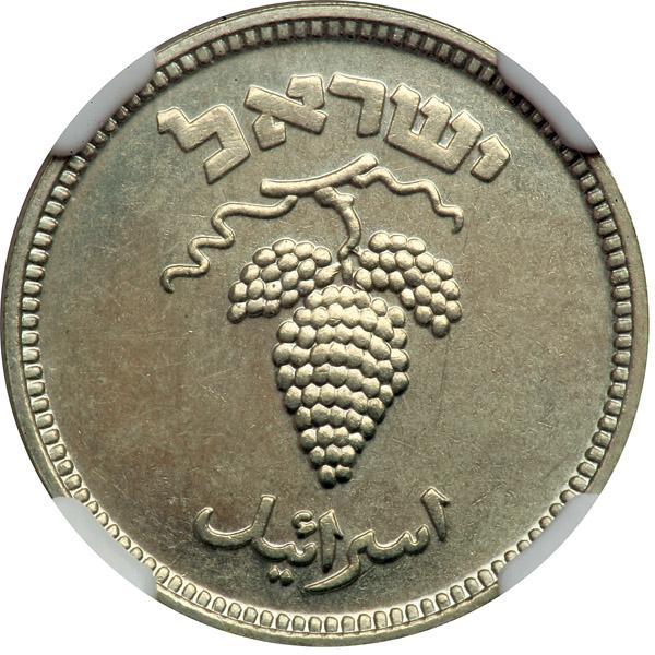 Israel. Specimen 25 Pruta, 1949. KM-12; Haffner-P-13a. Very few known specimens. Seldom seen. Very Rare. NGC graded Specimen 63. .