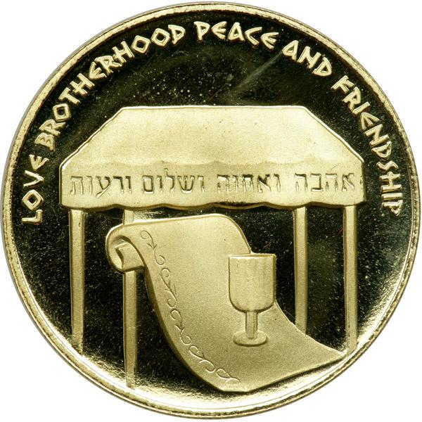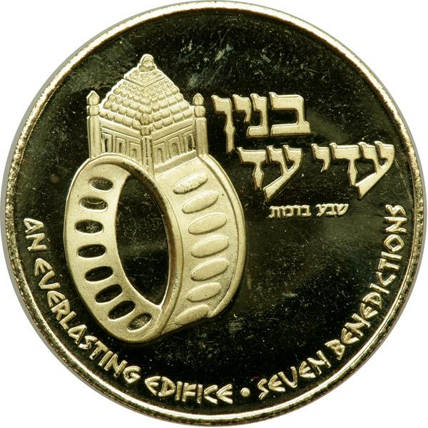 Israel. State Gold Medal, 1978. 30 mm. 15 grams.750 fine. For a Wedding. Features a chuppa, ketuba, wine glass and an antique marriage ring. Choice Brilliant Uncirculated.