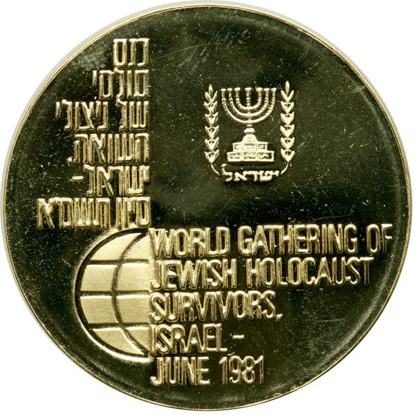 Israel. State Gold Medal, 1981. 30 mm. 15 grams.750 fine. Issued for the Convention of Holocaust Survivors held in Israel. Brilliant Uncirculated.