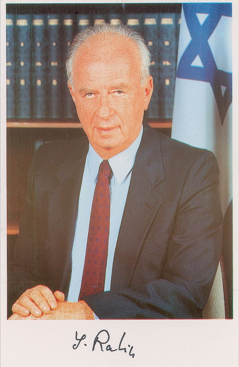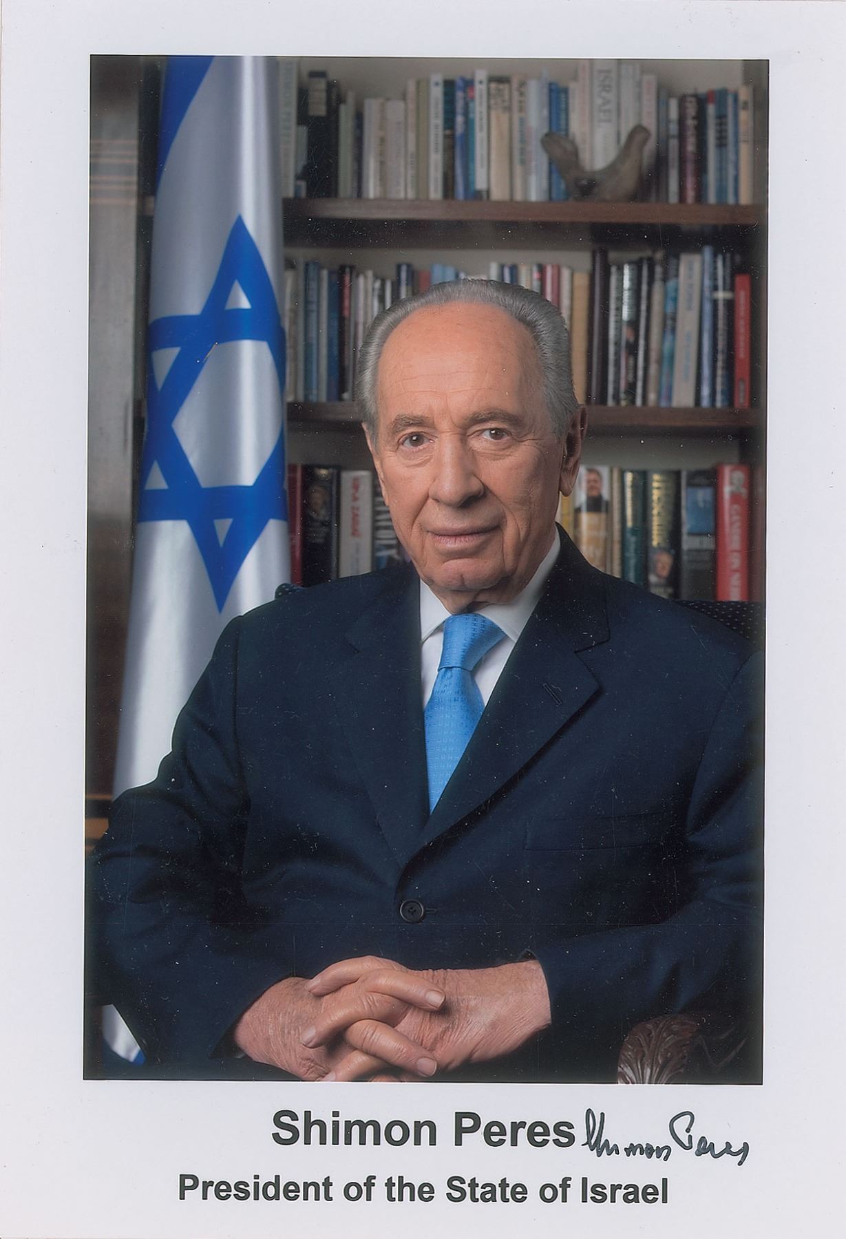 Three photos of prime ministers of Israel, ranging in size from 3.5 x 5 to 5.5 x 8, individually signed in black felt tip by the subjects: Menachem Begin, Yitzhak Rabin, and Shimon Peres. In fine condition.