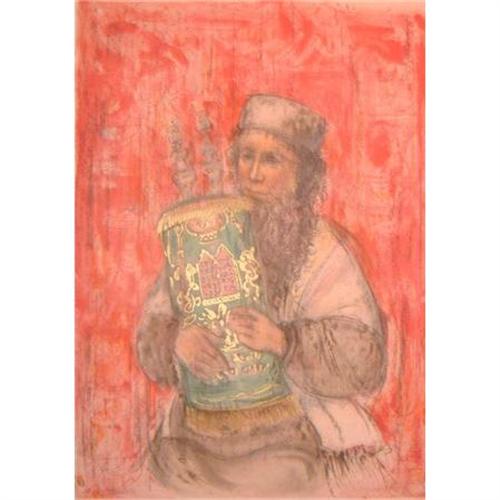 A Rear litho of an Israeli Rabbi done in 10 colors and gold.by Edna Hibel. just beautiful.